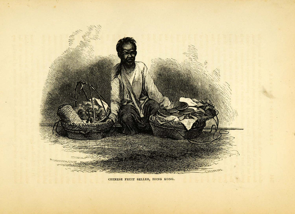 1857 Wood Engraving Chinese Fruit Vendor Hong Kong M. C. Perry Japan XGA5