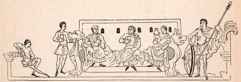 1862 Wood Engraving Frederick William Fairholt Anglo Saxon Drinking Party XGBA4