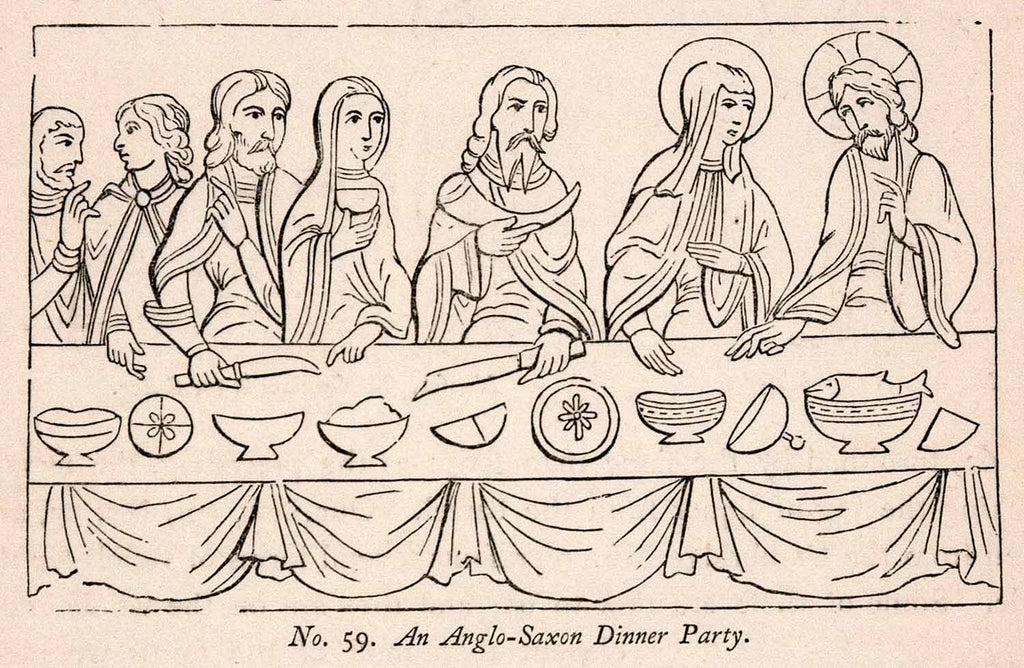 1862 Wood Engraving Frederick William Fairholt Anglo Saxon Dinner Party XGBA4