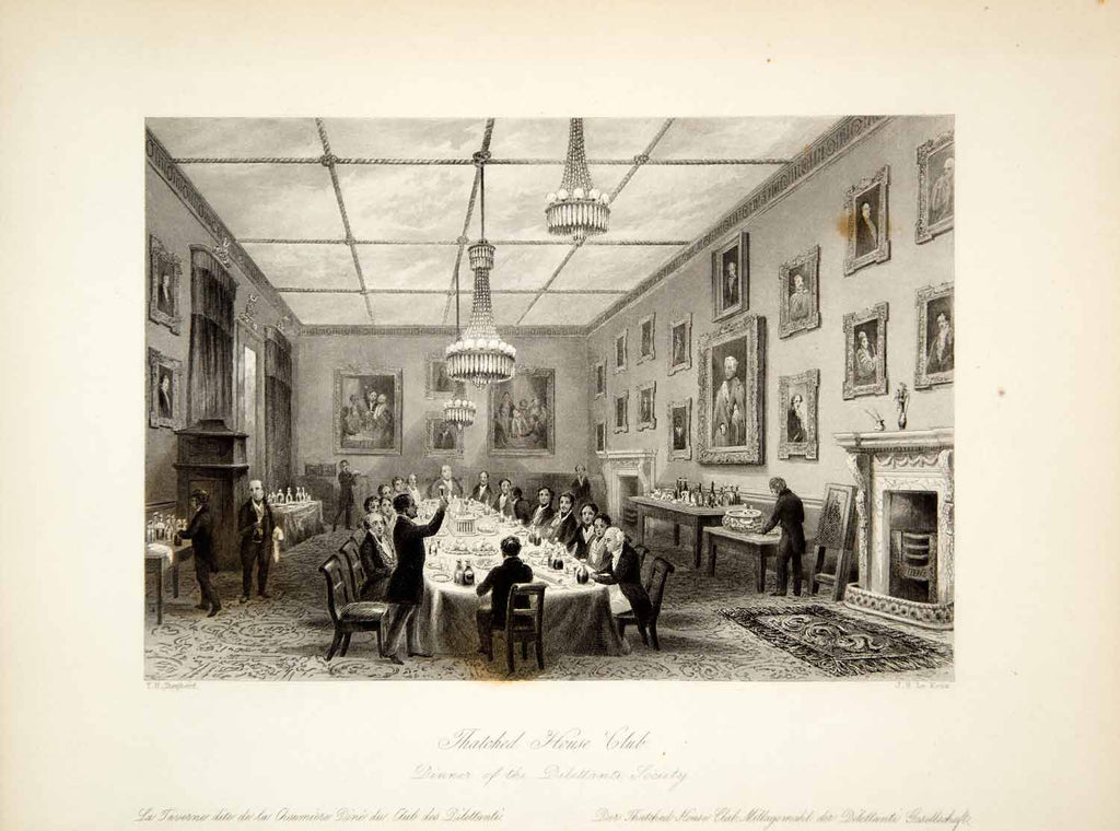 1845 Steel Engraving Thomas H Shepherd Thatched House Club Dilettante XGHD9