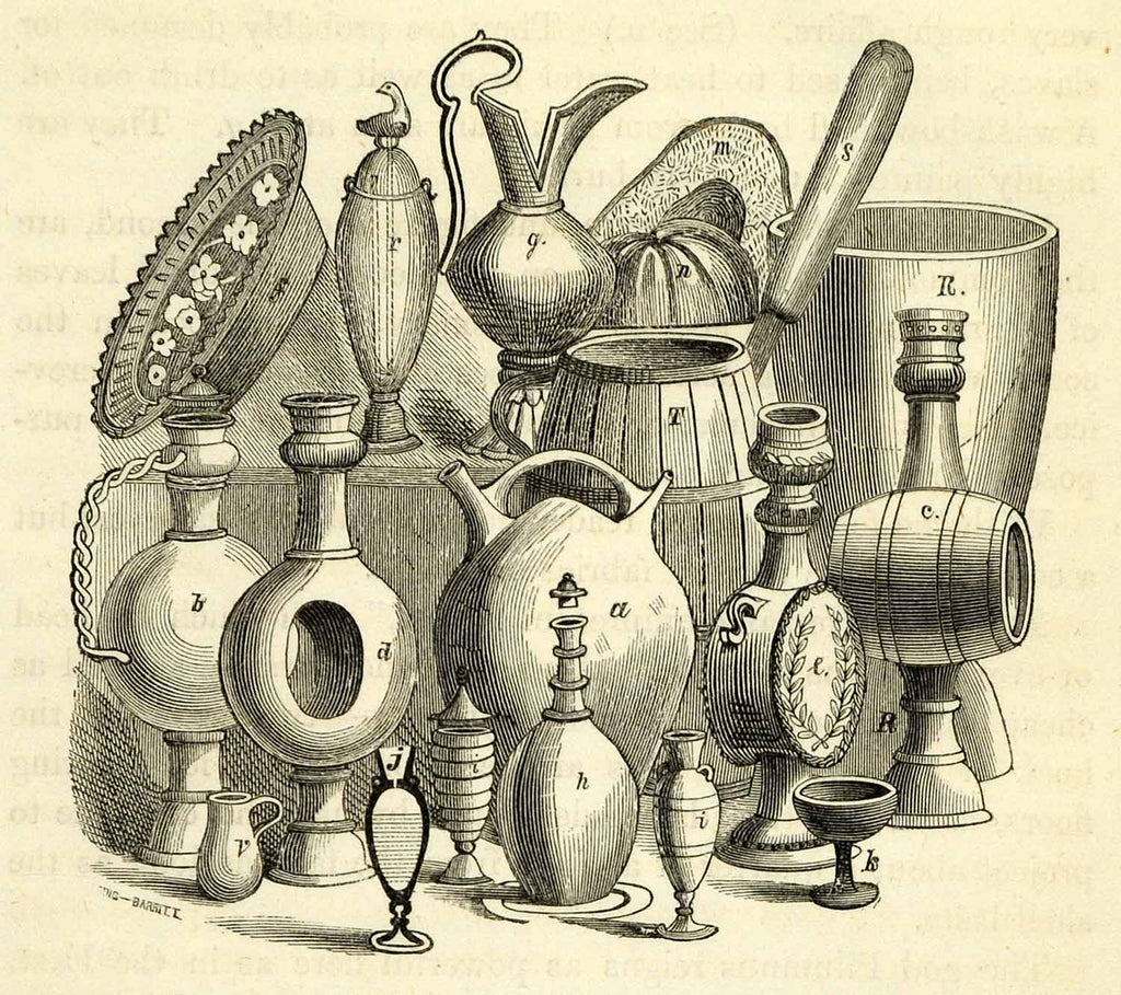 1856 Wood Engraving Talhas Moringues Clay Pot Pitcher Water Containers XGK9