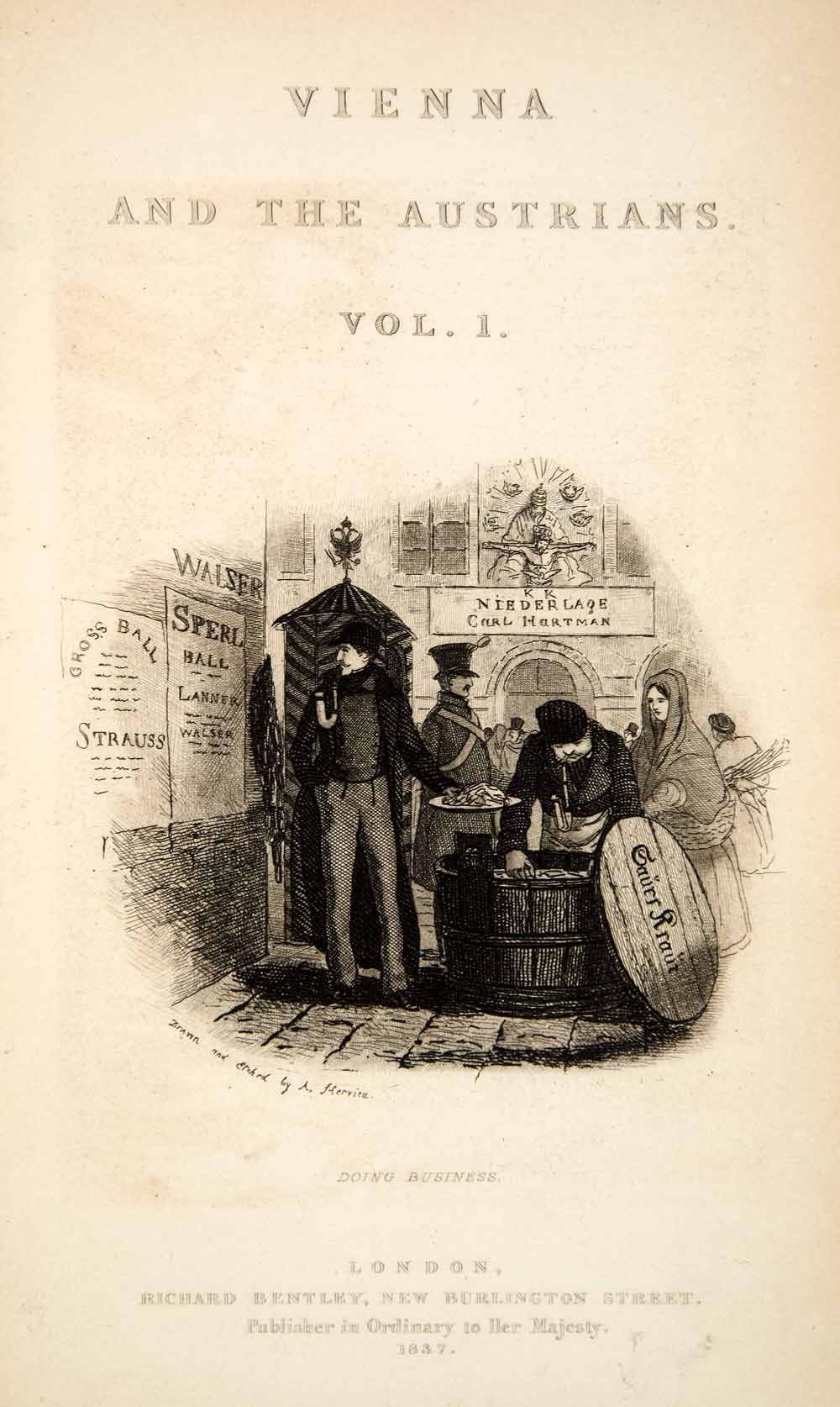 1838 Etching Vienna Austria Doing Business Sauerkraut Vendor Auguste XGUC9
