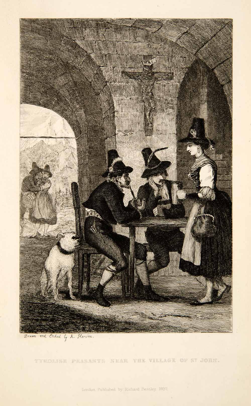 1838 Etching Tyrol Peasants Village St. John Barmaid Costume Auguste XGUC9