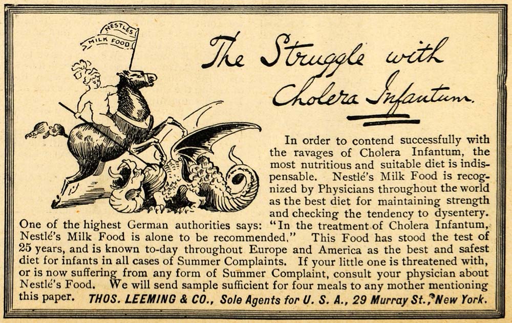 1891 Ad Dragon Fight Nestles Milk Food Thos Leeming Co. - ORIGINAL LHJ3