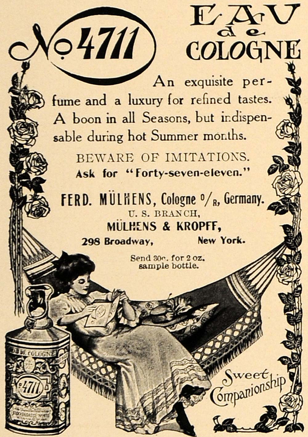 1907 Ad No. 4711 Eau de Cologne Mulhens Kropff New York - ORIGINAL CL9