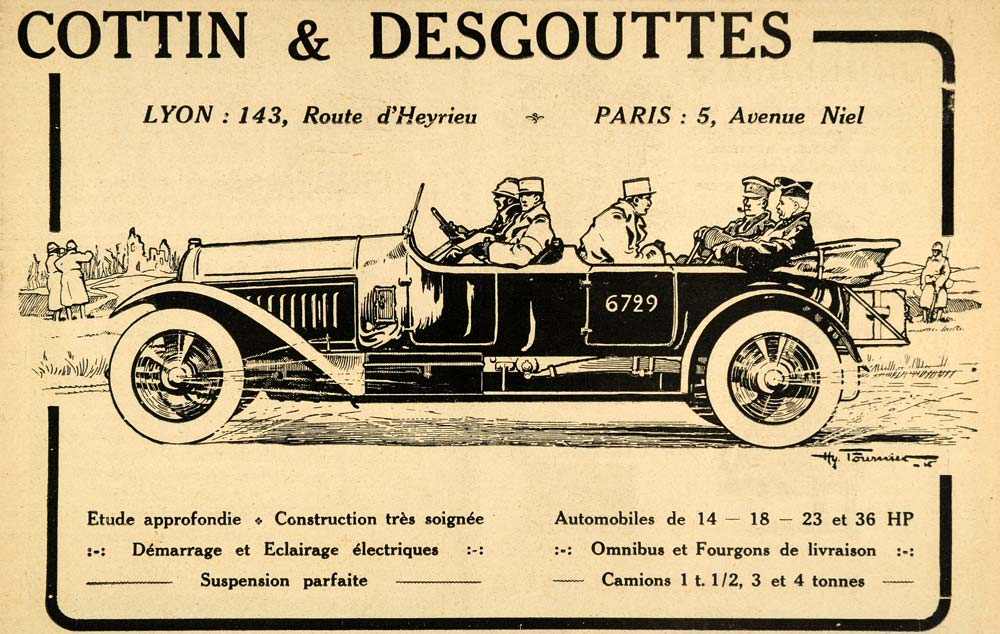1916 Ad French Cars Cottin Descouttes Racing Military - ORIGINAL ILL3