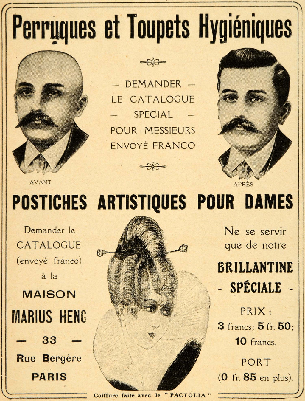 1916 Ad French Hairpieces Toupets Wigs Men Women Heng - ORIGINAL ILL3