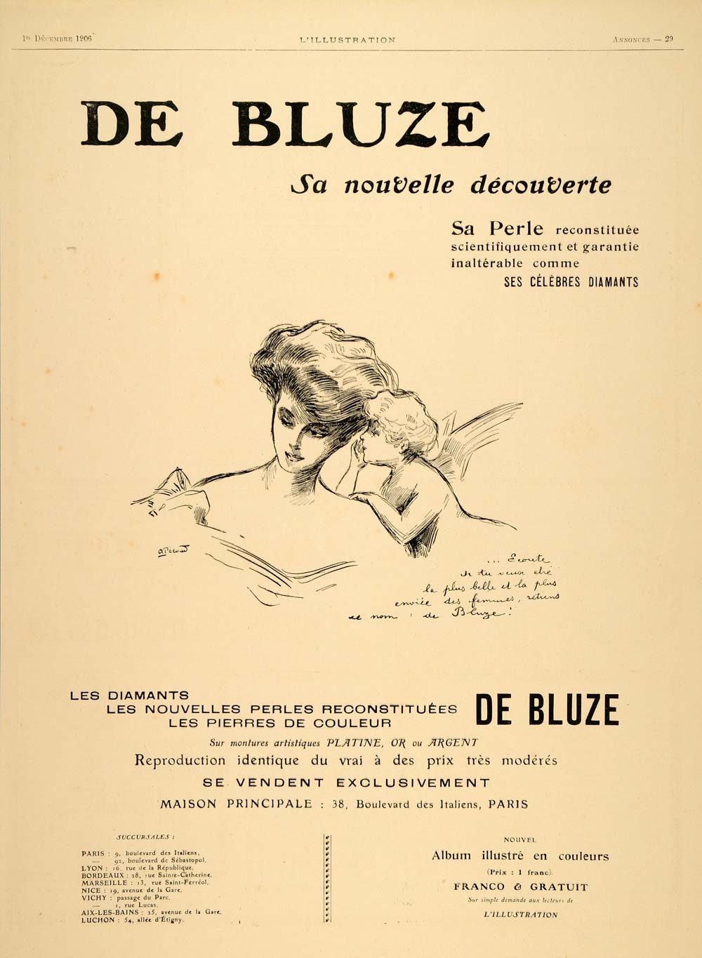 1906 Ad French Costume Jewelry Bluze Paris Cherub Cupid - ORIGINAL ILL4