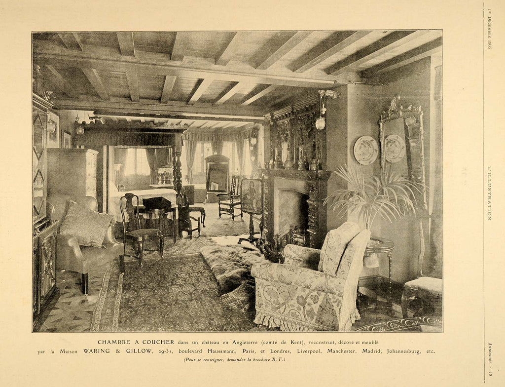 1906 French Ad Waring & Billow Bedroom Kent England - ORIGINAL ADVERTISING ILL4