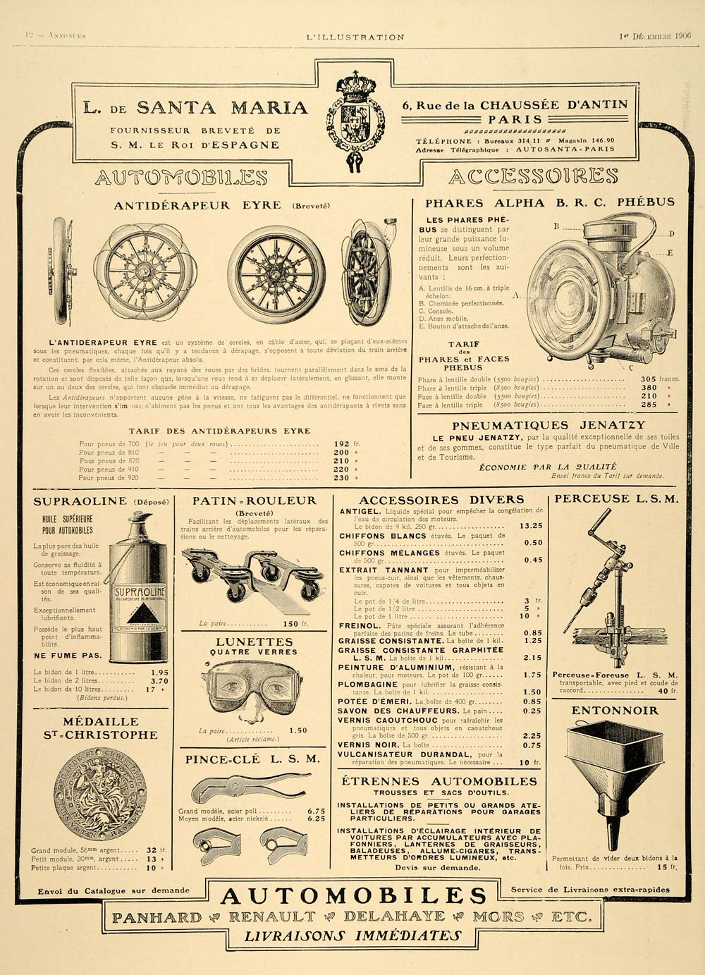 1906 French Ad Vintage Car Automobile Accessories Parts - ORIGINAL ILL4