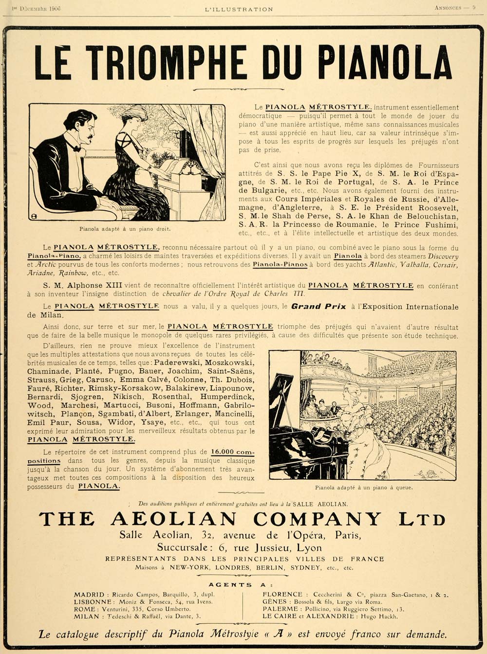 1906 Vintage French Ad Aeolian Pianola Metrostyle Piano ILL4