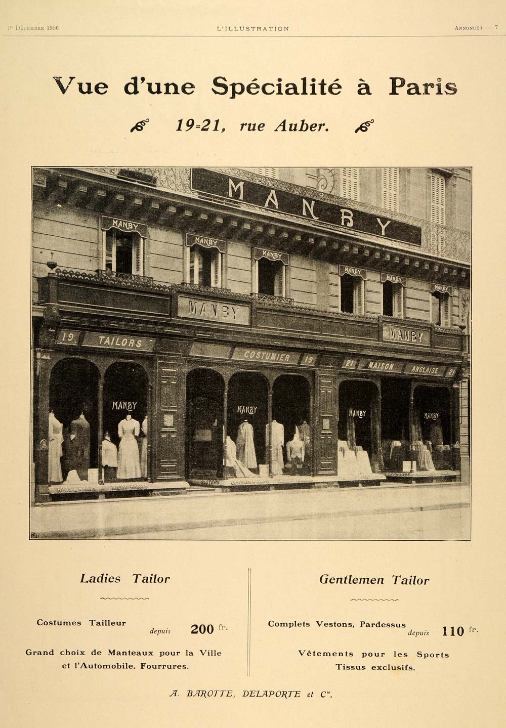1906 French Ad Manby Tailor Store Paris 19-21 Rue Auber - ORIGINAL ILL4