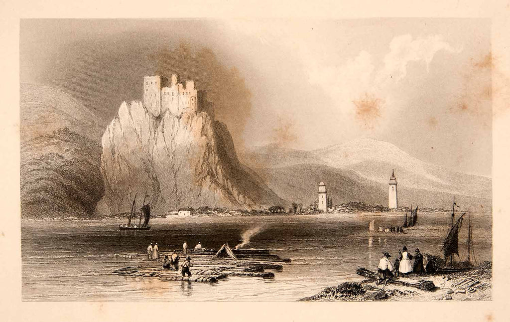 1840 Steel Engraving Castle Betzko Hungary Danube River Historic Landmark XGEC1