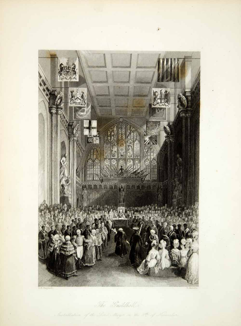 1845 Steel Engraving Thomas H Shepherd Guildhall London Victorian XGHD9