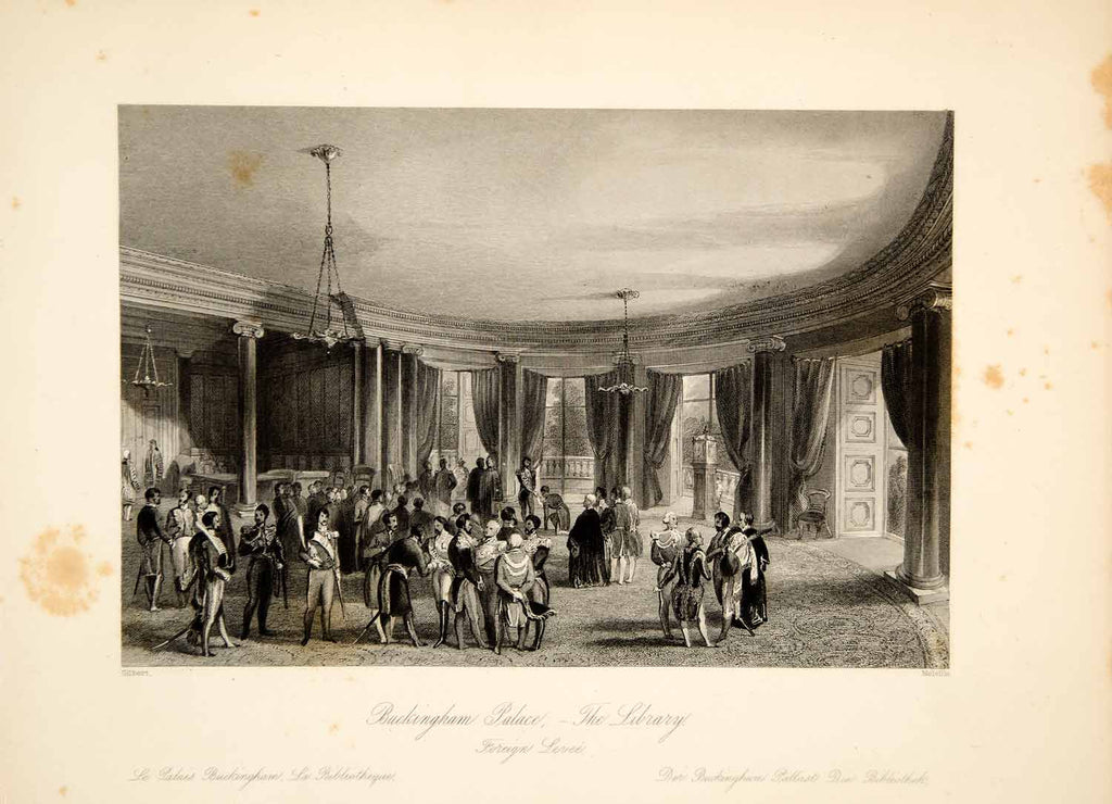 1845 Steel Engraving J Gilbert Buckingham Palace Library Foreign Levee XGHD9
