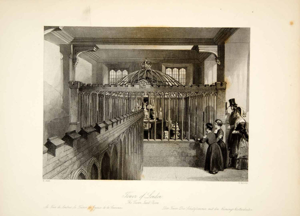 1845 Steel Engraving H Jewitt Tower of London British Crown Jewel Room XGHD9