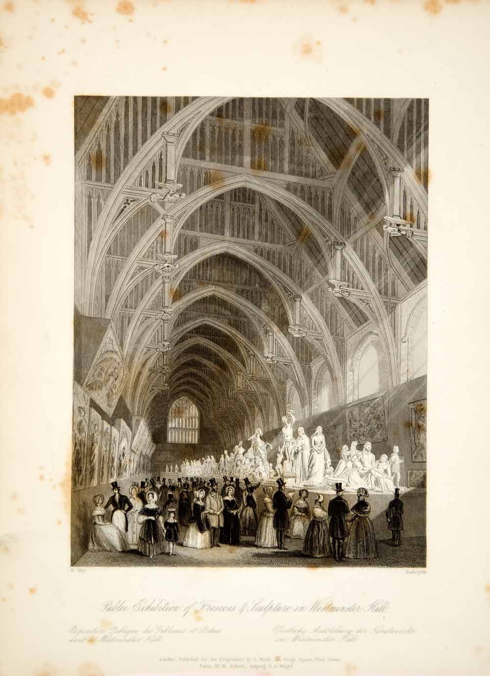 1845 Steel Engraving B Sly Westminster Hall Fresco Sculpture Exhibition XGHD9