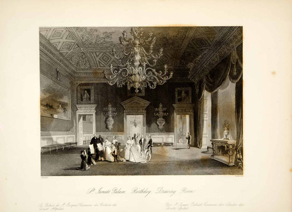 1845 Steel Engraving J Gilbert St James Palace Birthday Drawing Room XGHD9