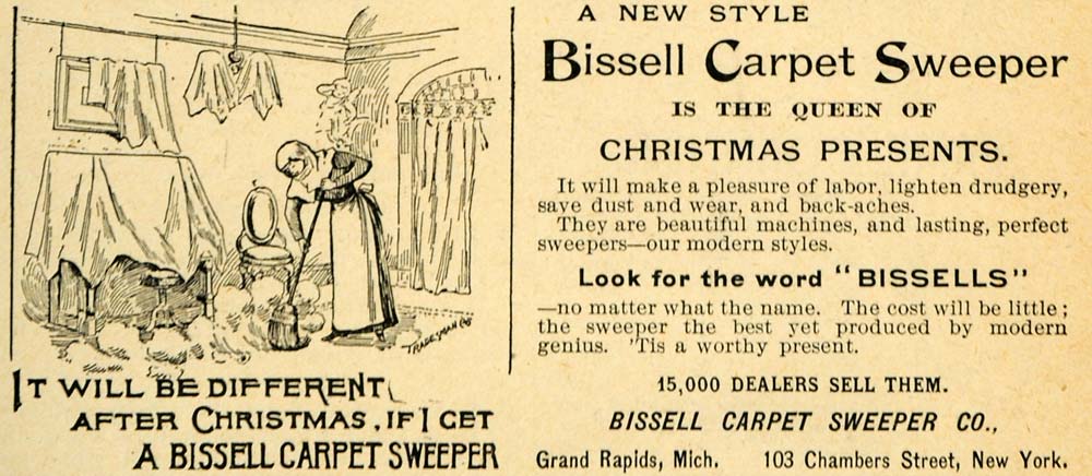1891 Ad Christmas Bissell Carpet Sweeper House Chores Cleaning 103 Chambers LHJ4