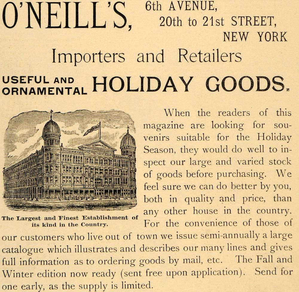 1891 Ad O'Neill's Importer Retailer Department Store Holiday Ornamental LHJ4