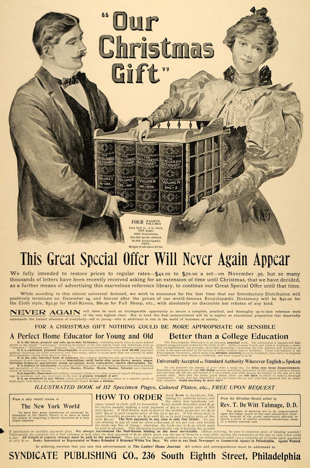 1896 Ad Encyclopedia Dictionary Syndicate Antique Christmas Gift Books LHJ5