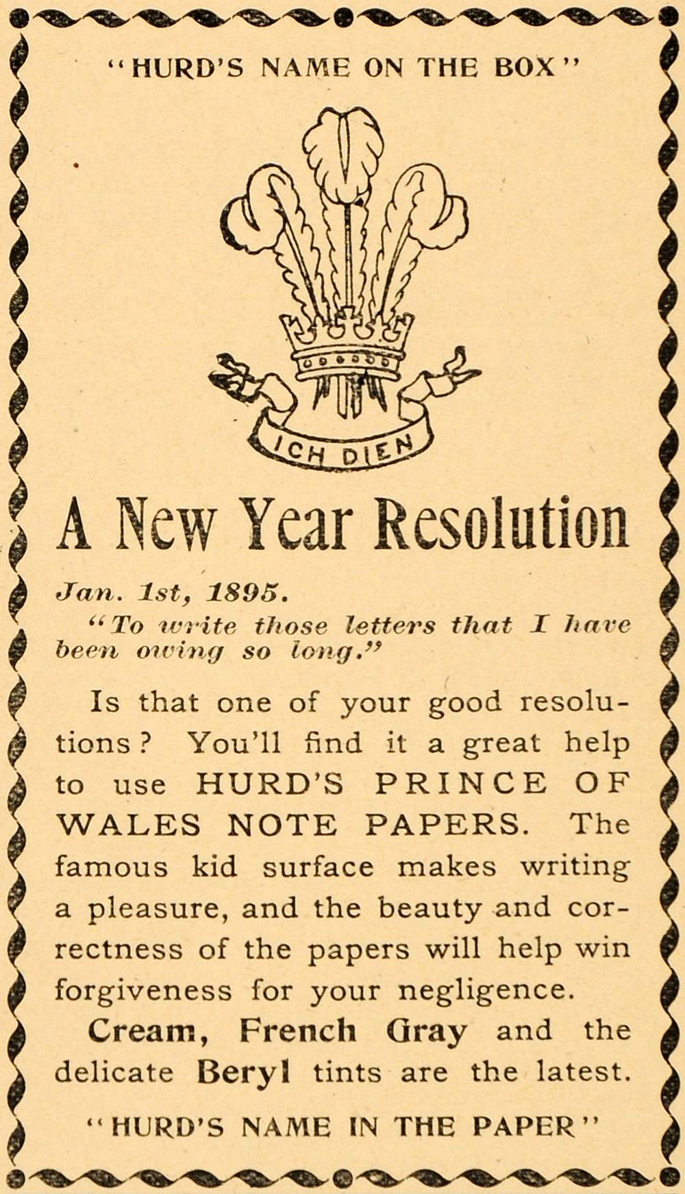 1895 Ad Hurds Prince Wales Note Paper New Year Ich Dien - ORIGINAL OD3