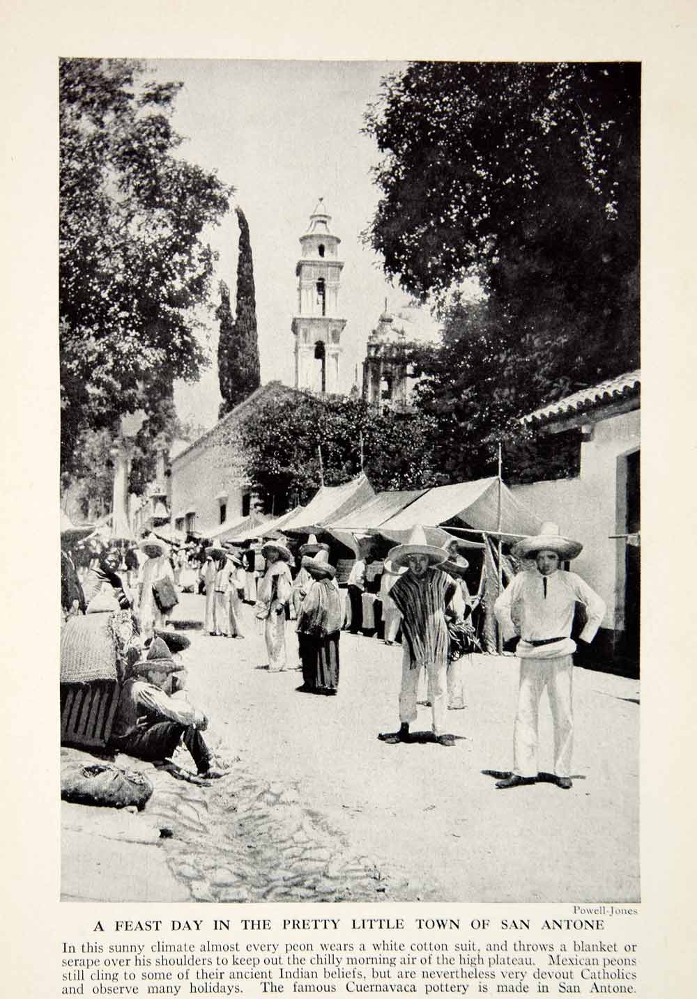 1938 Print Feast Day San Antone Mexico Peon Town Street Sombrero Serape XGGD5