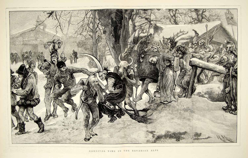 1874 Wood Engraving Art Carnival Costume Bavaria Germany Holiday Parade YTG8