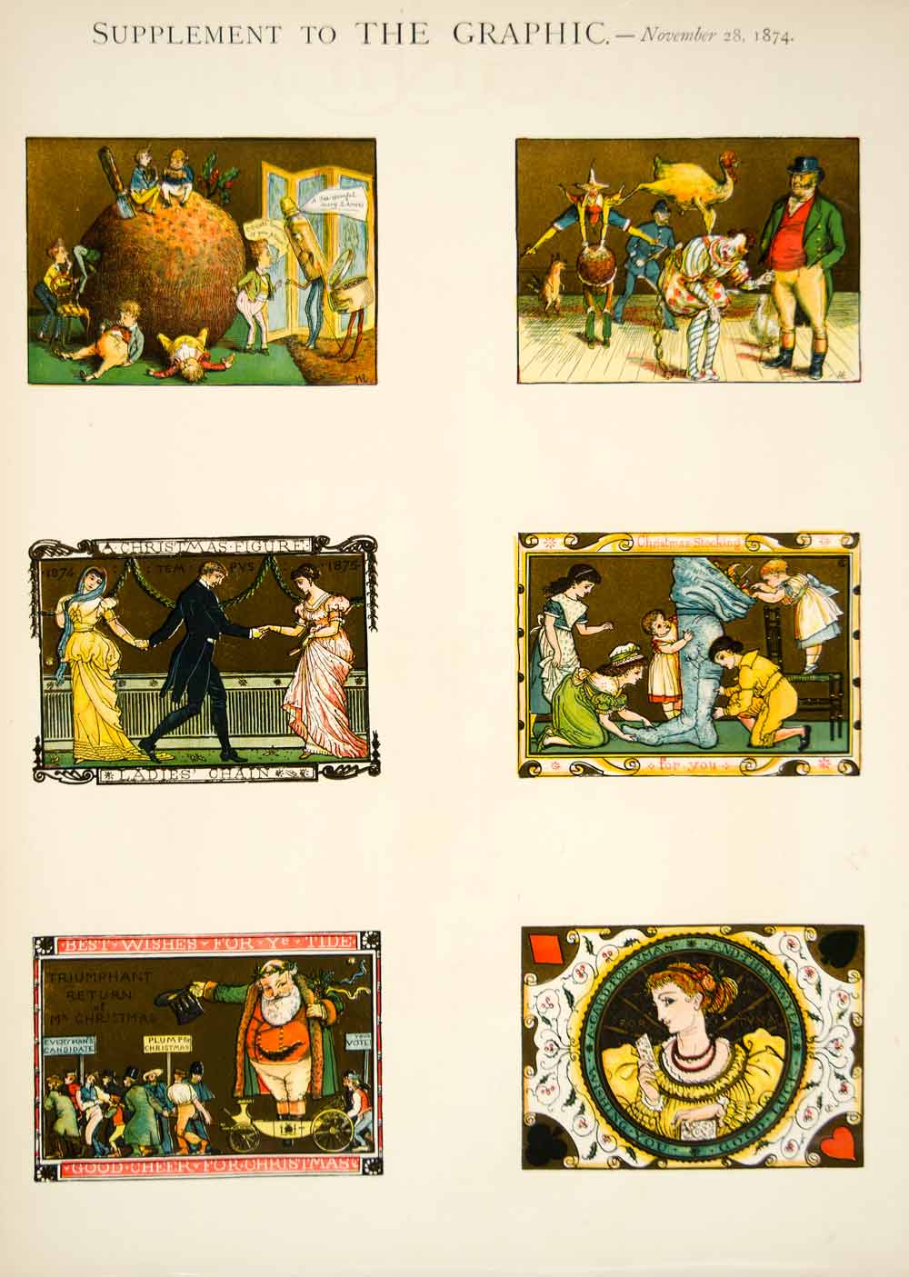 1874 Wood Engraving Art Christmas New Years Eve Holiday Xmas Victorian Era YTGA1