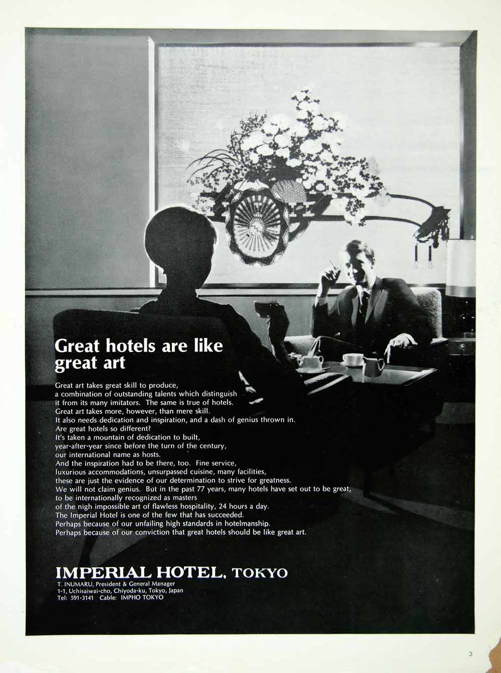 1968 Ad Imperial Hotel Tokyo Inumaru Room Japanese Lodging Smoking Couple XGGD7