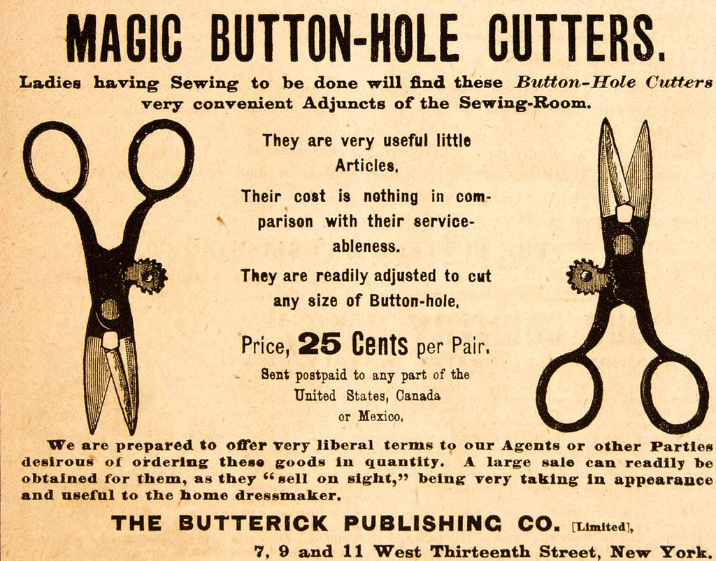 1890 Ad Magic Button Hole Cutters Butternick Publishing Company Tool YDL7