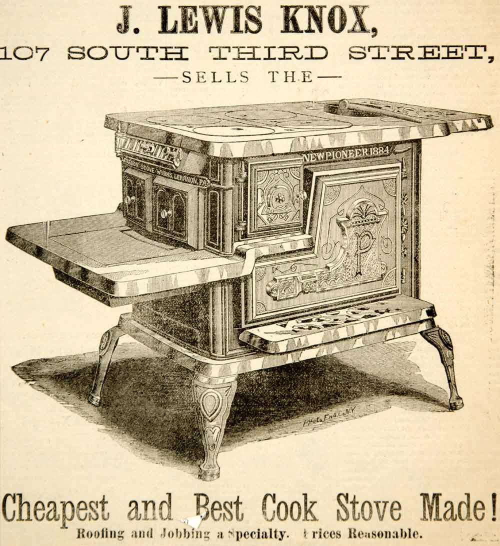 1885 Ad Antique New Pioneer Cook Stove J. Lewis Knox Harrisburg PA Store YOA1