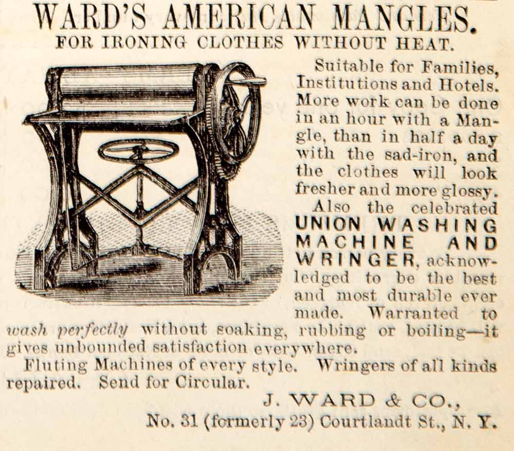1870 Ad Antique Ward's American Mangle Ironing Clothes Victorian Appliance YPM3