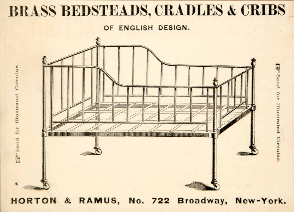 1876 Ad English Brass Bedstead Cradle Crib Victorian Furniture Horton Ramus YSN1