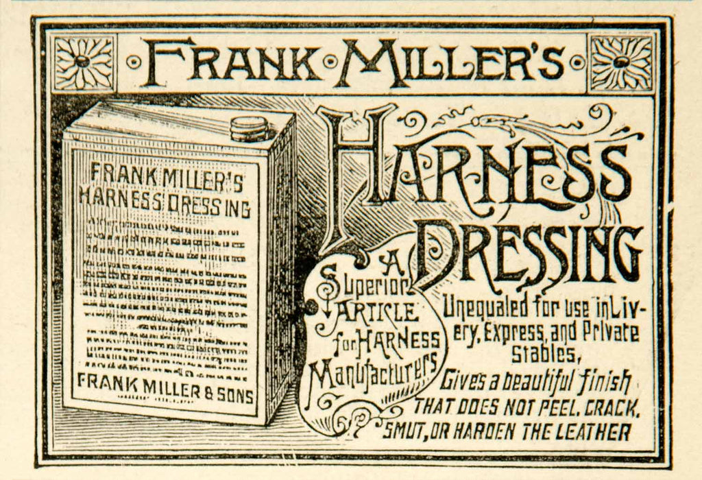 1888 Ad Frank Miller Harness Dressing Leather Finishing Victorian Design YYC1