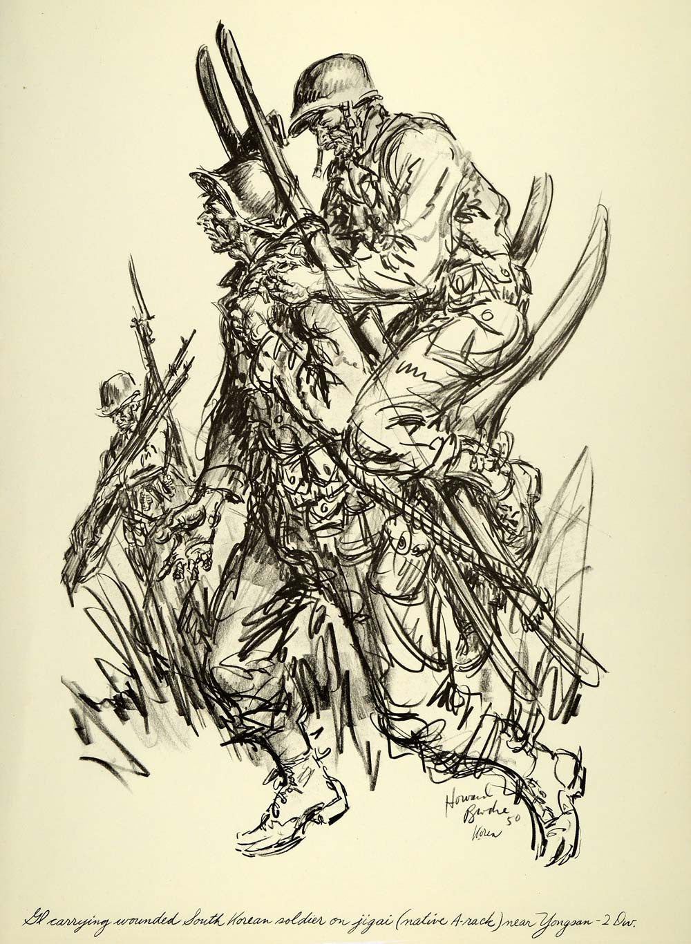By capturing emotions on the field with fluid lines and attention to detail, Brodie's work is honest and at times, harrowing, but this honesty established him as one of the top news artists of his time. He remained a war artist during the Korean, French Indochina and Vietnam wars.