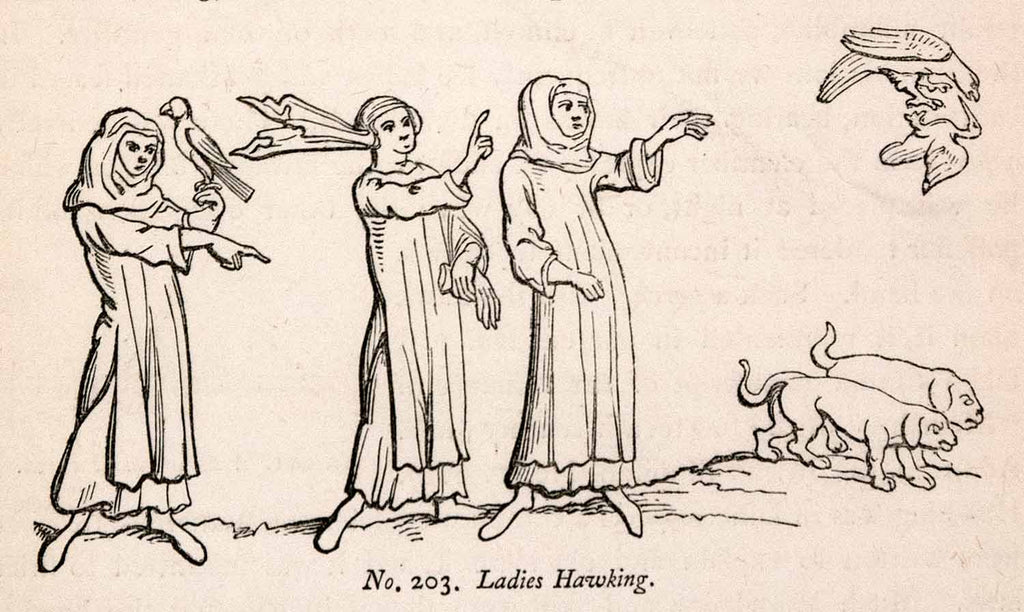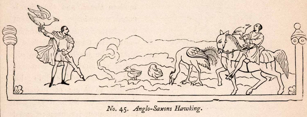 1862 Wood Engraving Frederick William Fairholt Anglo Saxon Hawking Bird XGBA4