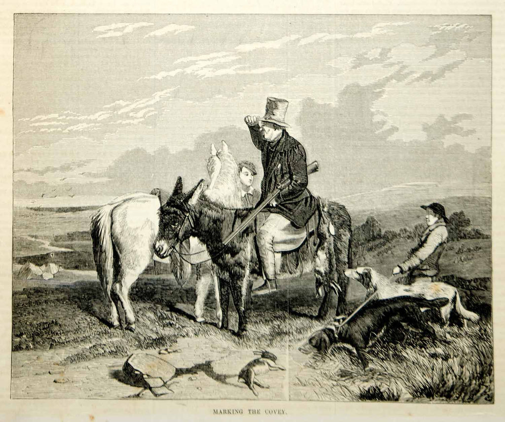 1854 Engraving Marking the Covey Harrry Hall Sporting Art Gamekeeper Hunting