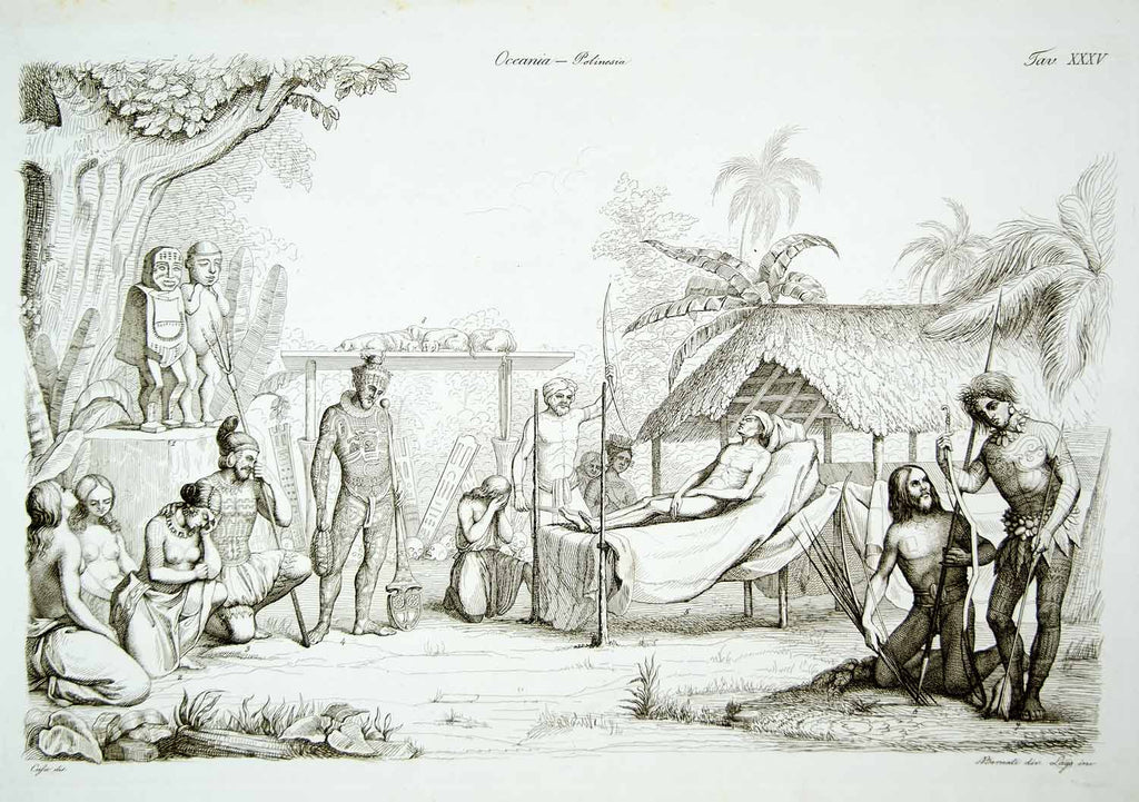 1843 Copper Engraving Giacomo Casa Art Tahiti French Polynesia Costume Nude ILC3