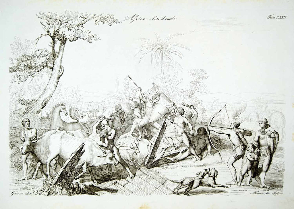 1843 Copper Engraving Giacomo Casa Art Khoikhoi Costume South Africa Nude ILC3