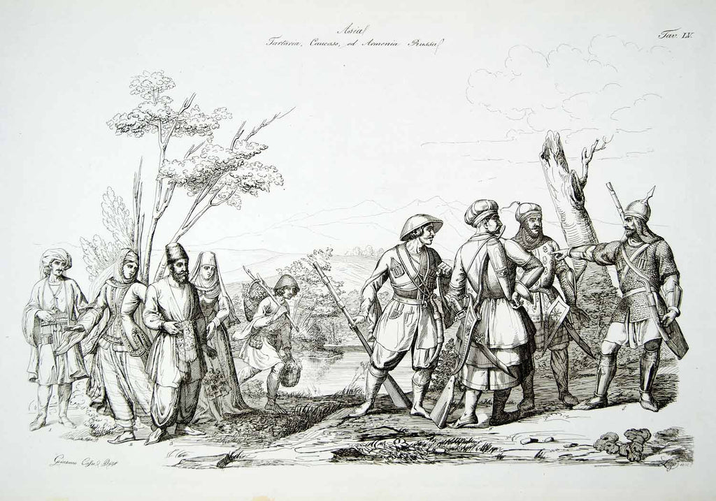 1843 Copper Engraving Giacomo Casa Art Tartar Uzbeks Armenian Costume Dress ILC3