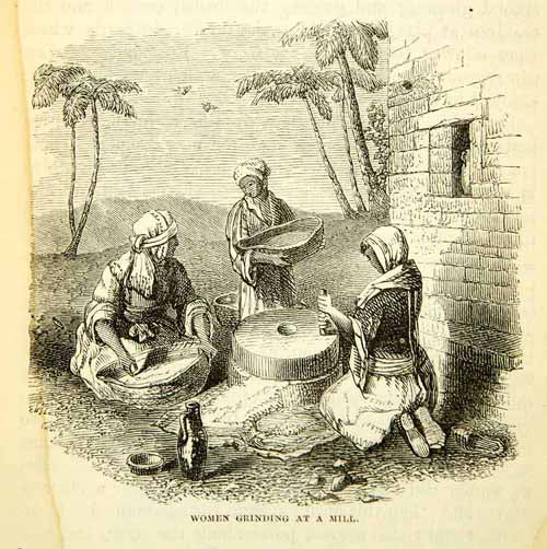1858 Wood Engraving Art Women Grinding Flour Mill Middle East Domestic XGAD7