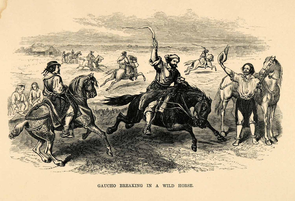 1865 Wood Engraving Gaucho Breaking Horse Traditional Native Argentina XGS2