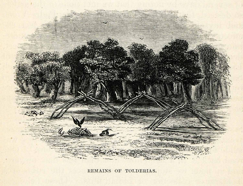 1865 Wood Engraving Tolderias Tents Indian Woods Remains Ethnic Native XGS2