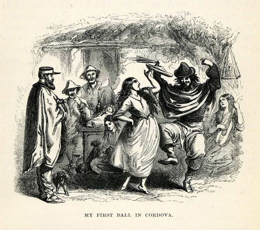 1865 Wood Engraving Funeral Wake Dance Tradition Argentina Custom Music XGS2