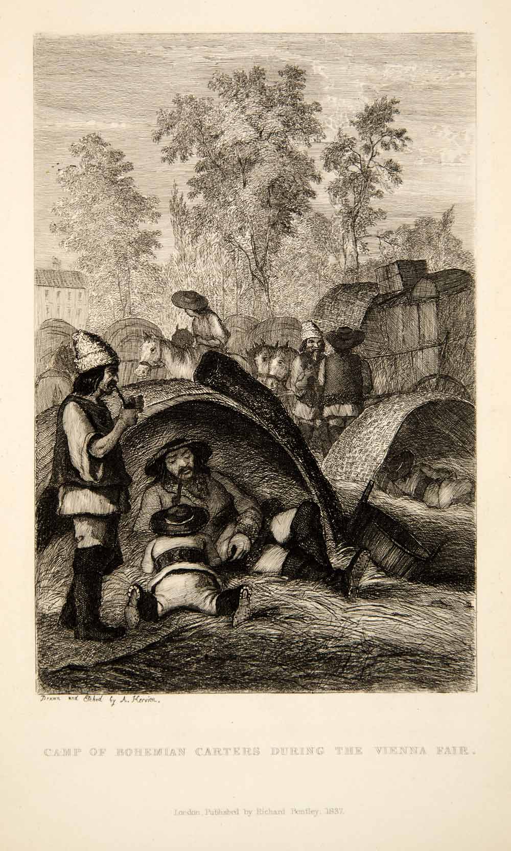 1838 Etching Camp Bohemian Carters Vienna Austria Fair Ethnic Auguste XGUC9