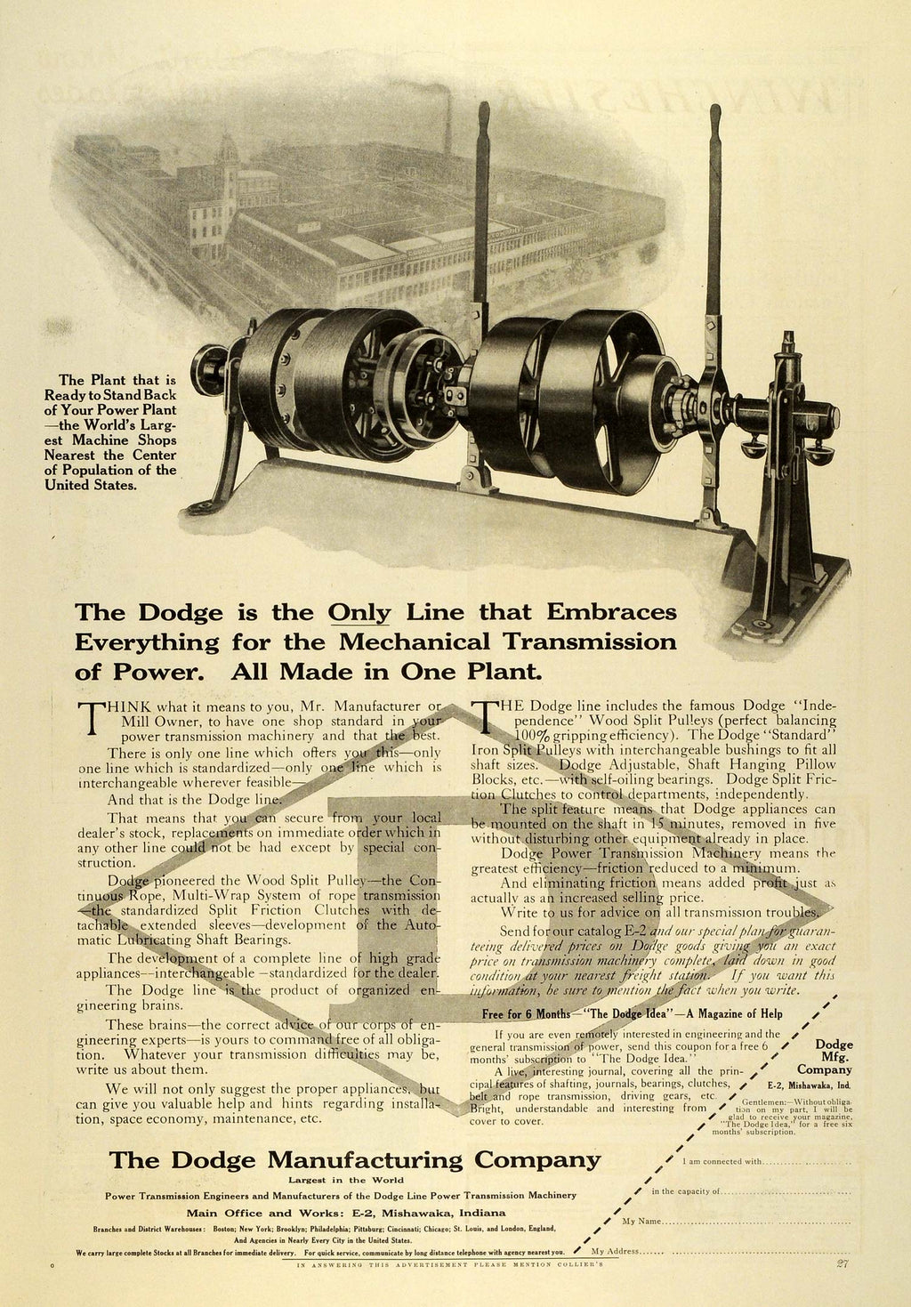 1909 Ad Dodge Automotive Mechanical Power Transmission Industrial MX7