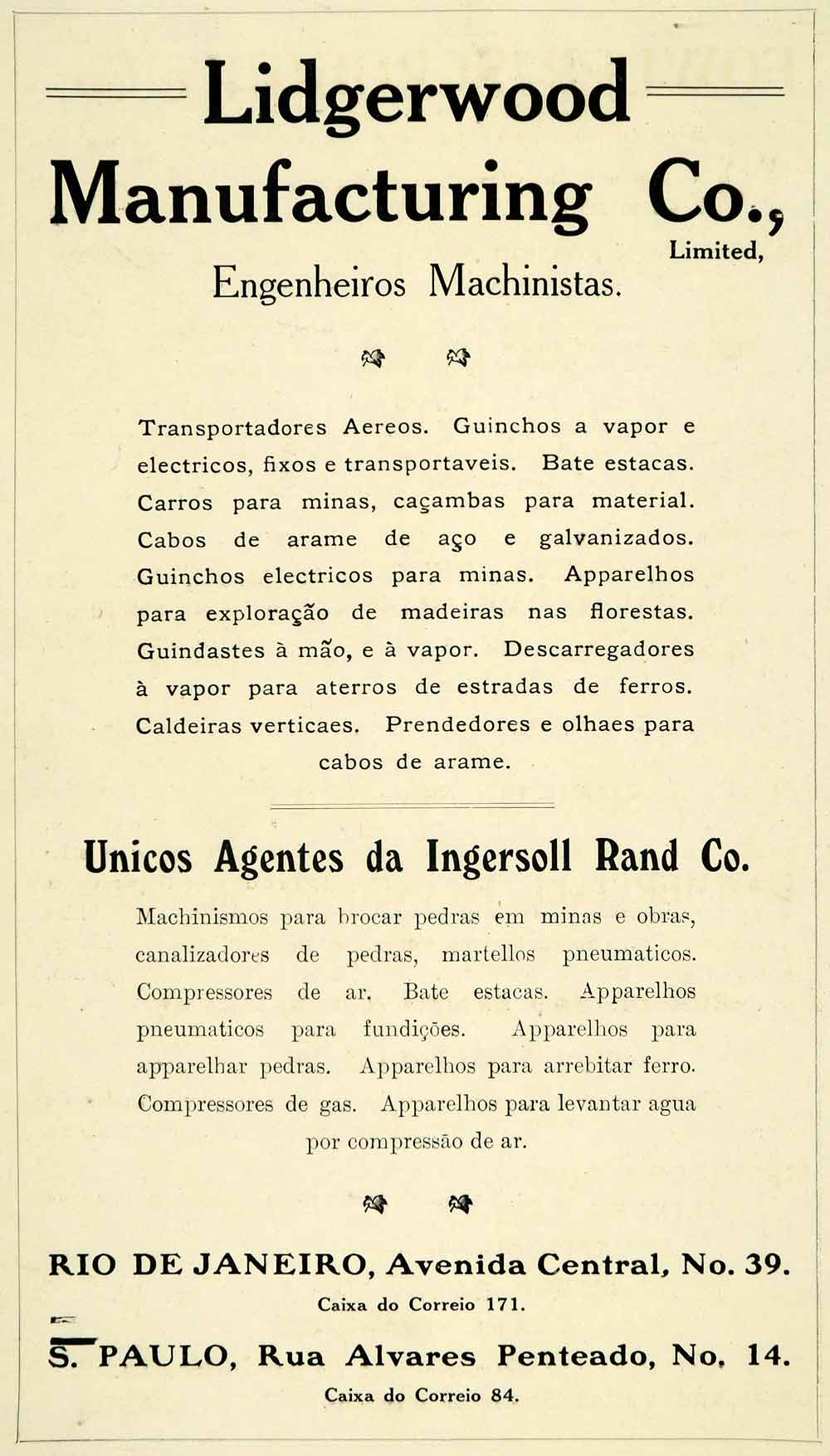 1909 Ad Lidgerwood Manufacturing Brazil Rio de Janeiro Machine Engineering XGL2