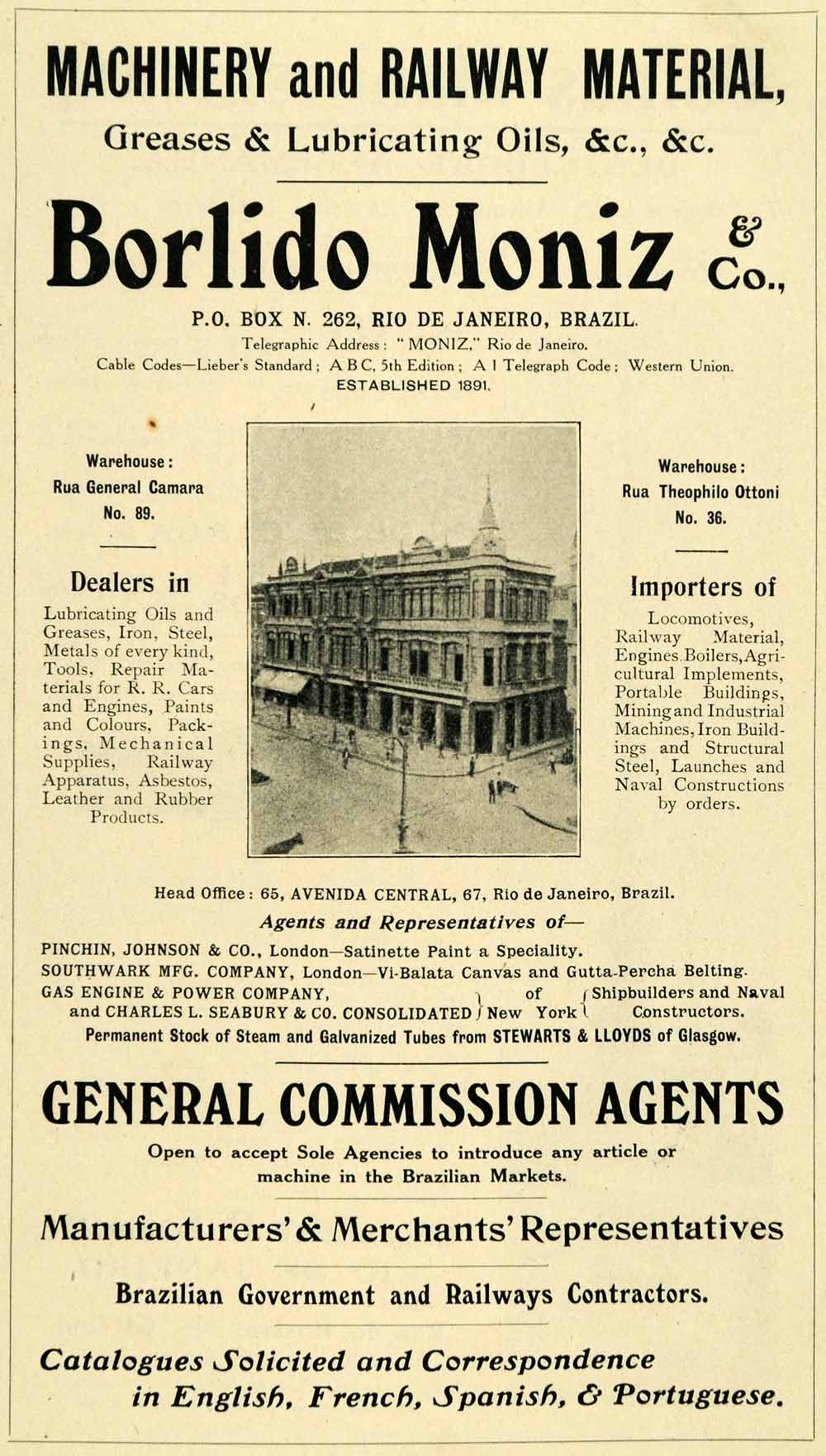 1909 Ad Machinery & Railway Lubricating Oil Borlido Moniz Brazil Building XGL2