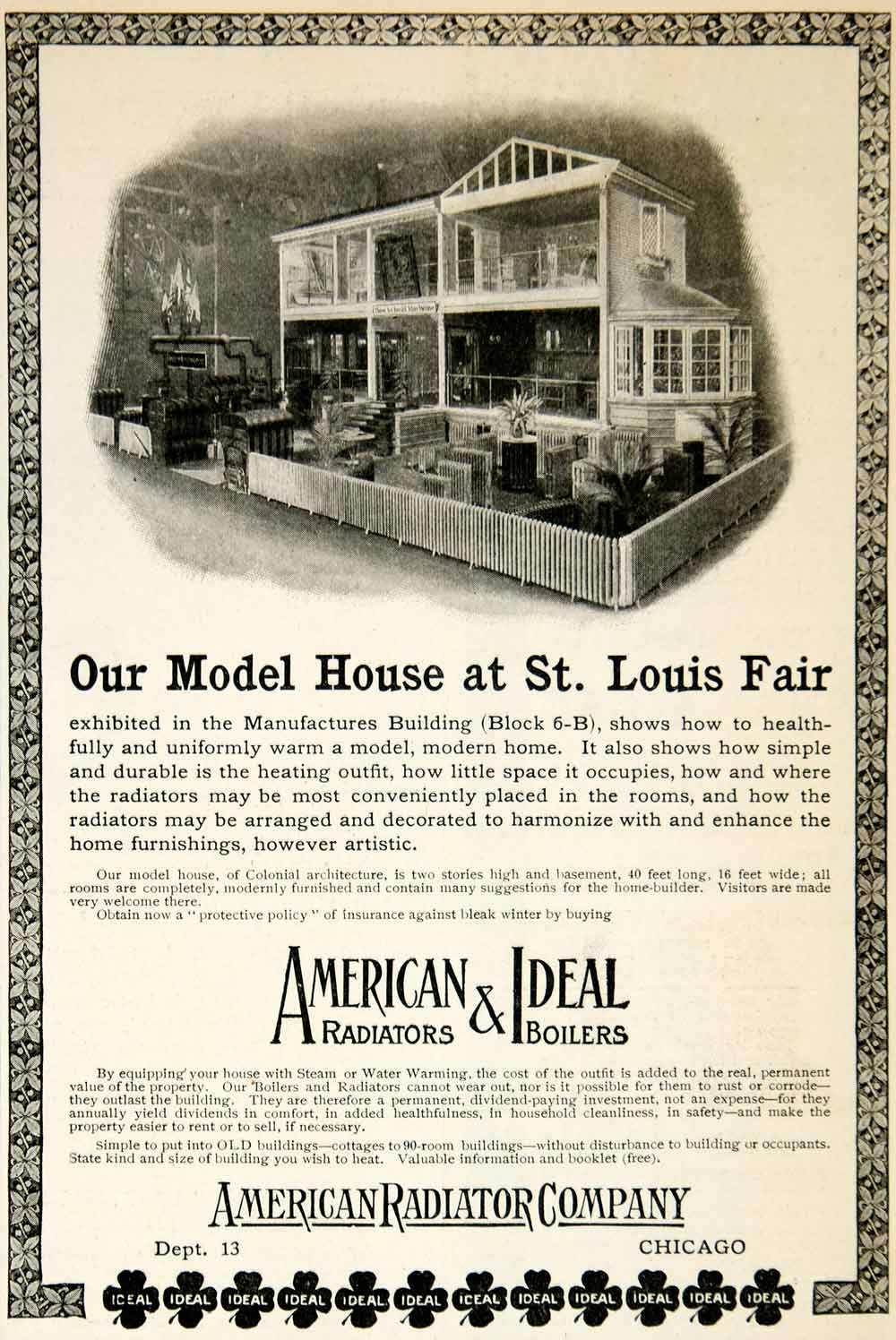 1904 Ad American Radiators Ideal Boilers Model Home Chicago Architecture YDL1